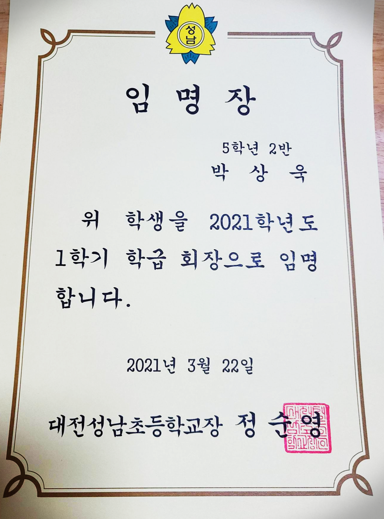 임명장을 받아왔다.