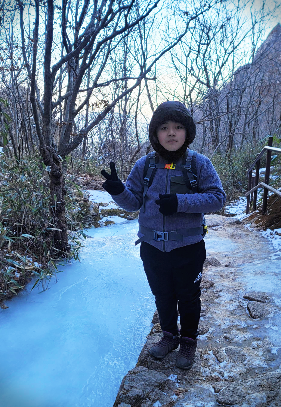 골짜기 물은 꽁꽁 얼어붙었다.