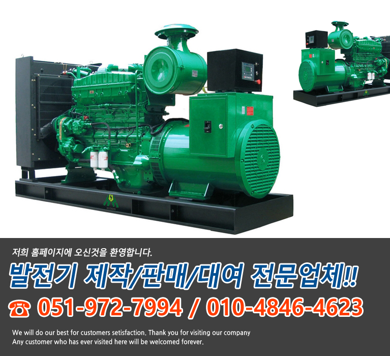 앞으로도 현재에 안주하지 않고 고객의 요구에 맞는 최상의 발전기를 공급하며 현장에서의 불편함이 없도록 최고의 정성과 서비스를 다할것을 약속드립니다.